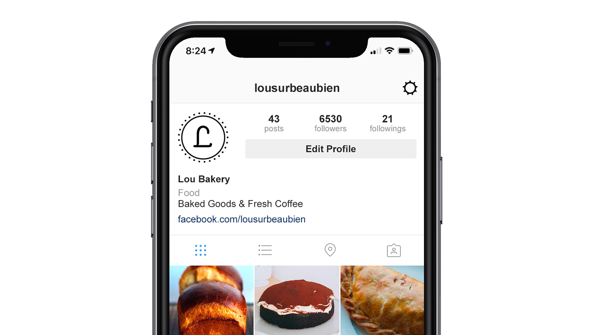 A contemporary bakery logo reflecting the style of the goods offered; hip treats with grandma flair. A simplified mark was created for social media profiles, pushing the capital L front and center as a visual hook (quite literally).